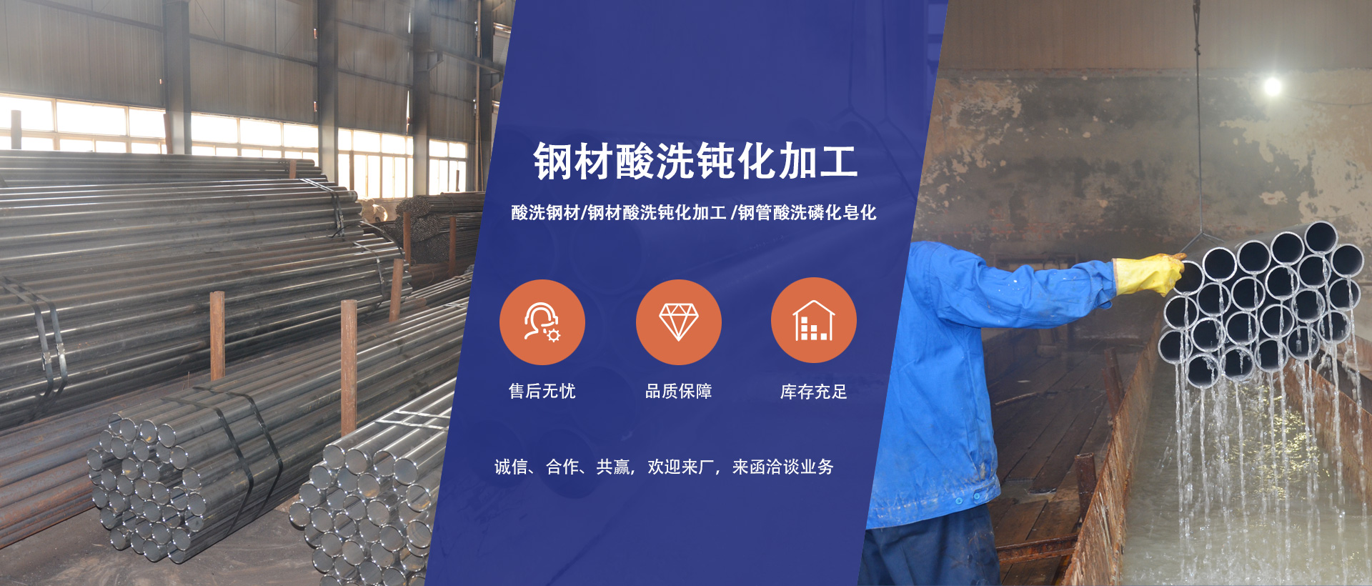本公司主要產品:鋼材酸洗鈍化加工、鋼管酸洗磷化皂化、無縫鋼管酸洗防銹加工、紡織機械用管等